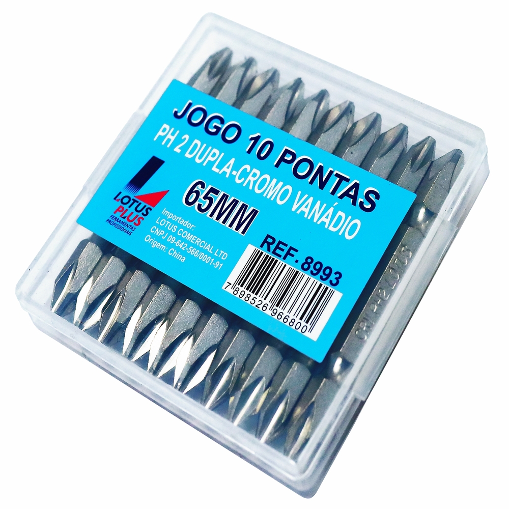 O jogo com 10 ponteiras duplas PH2 de 65 mm foi desenvolvido para oferecer resistência, praticidade e eficiência em aplicações manuais do dia a dia.